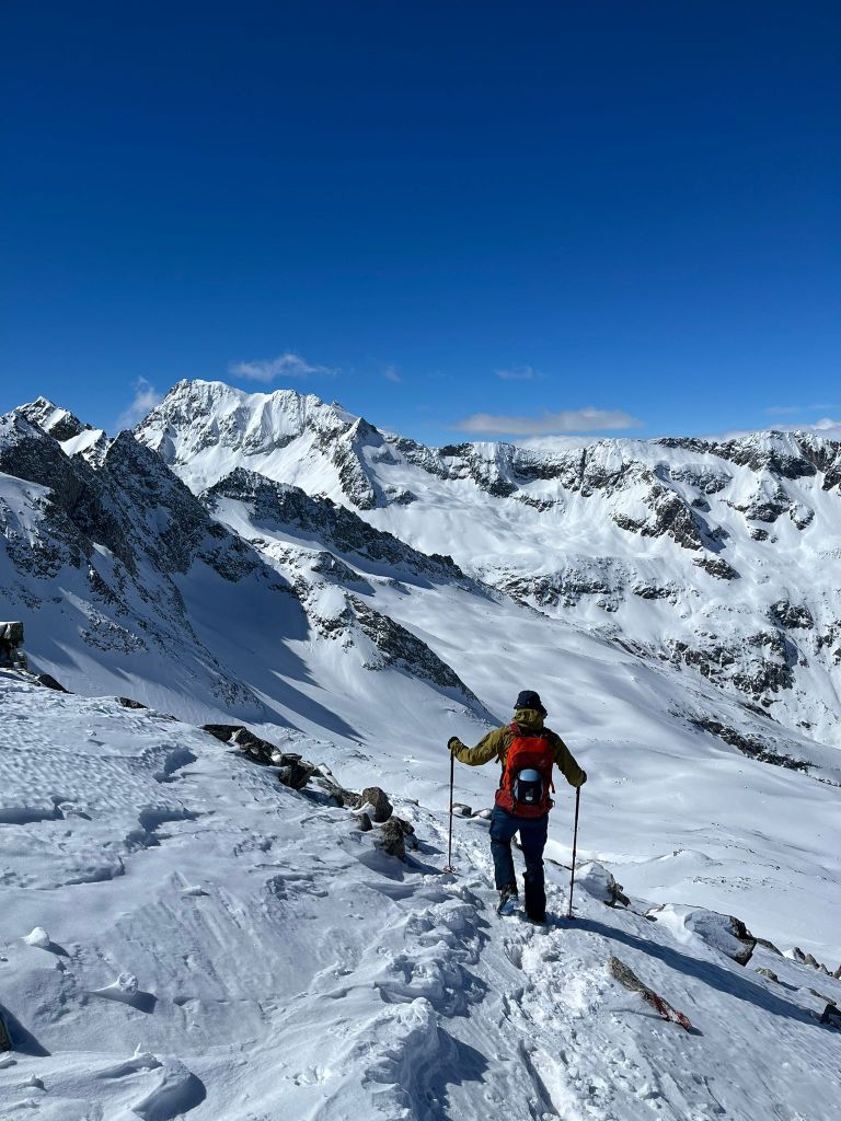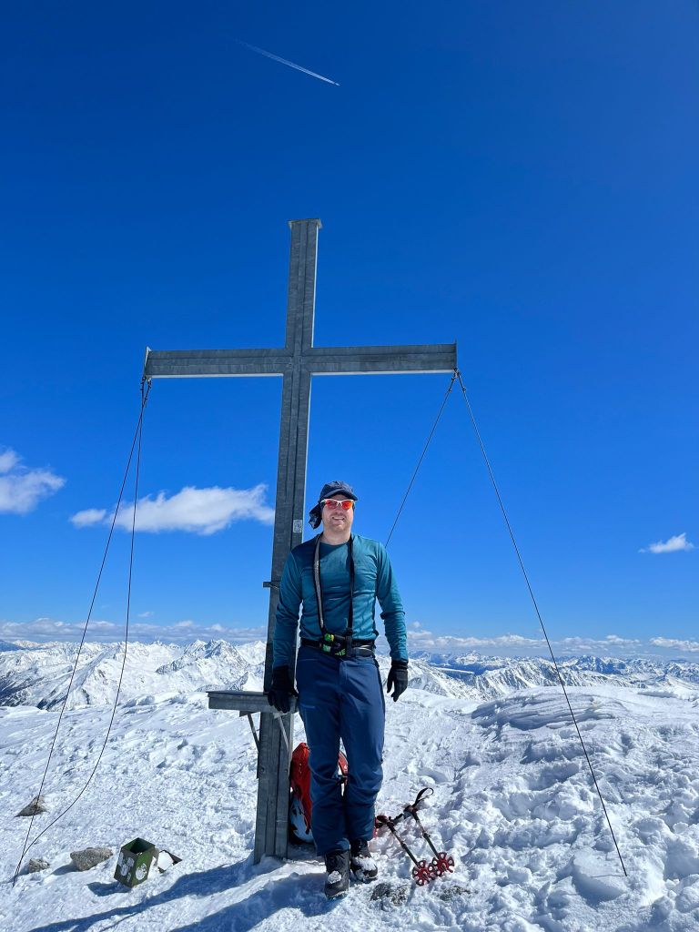 Tour vom Staller Sattel bei sehr gutem Wetter. Leider etwas zu kalt für guten Firn bei der Abfahrt. Bis zur Jägerscharte mit Ski, die letzten Meter zum Gipfel zu Fuß. Alleine am Gipfel.