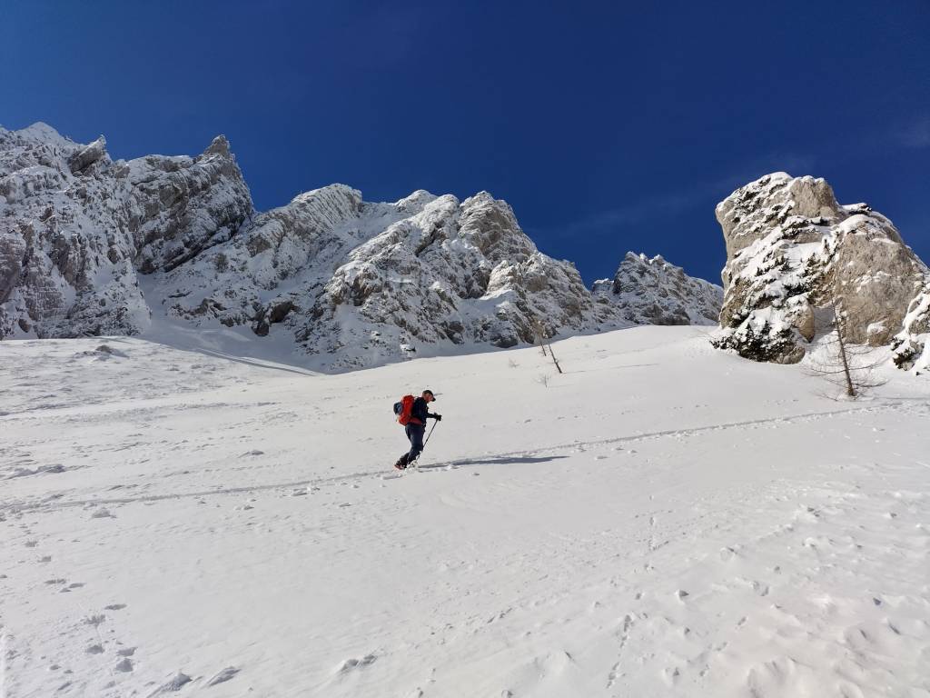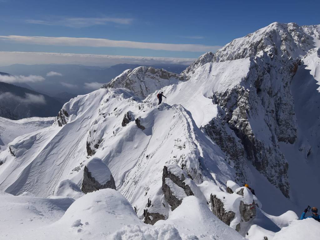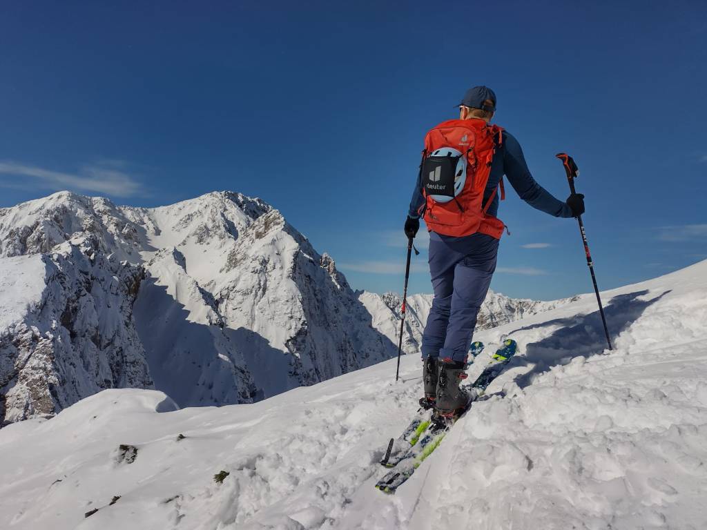 Ausganspunkt Gasthaus Bodenbauer. Aufstieg entlang der Loipe und später durchs Wertatschakar bis zur Gamsgrube. Weiter am Südosthang Richtung Gipfelgrat. Die letzten Meter am Grat ohne Ski zum Gipfelkreuz. Grat an diesem Tag problemlos, da gut getreten.