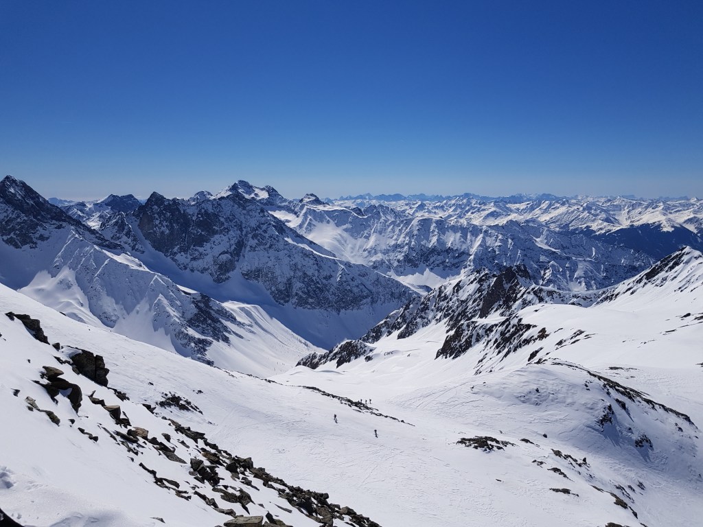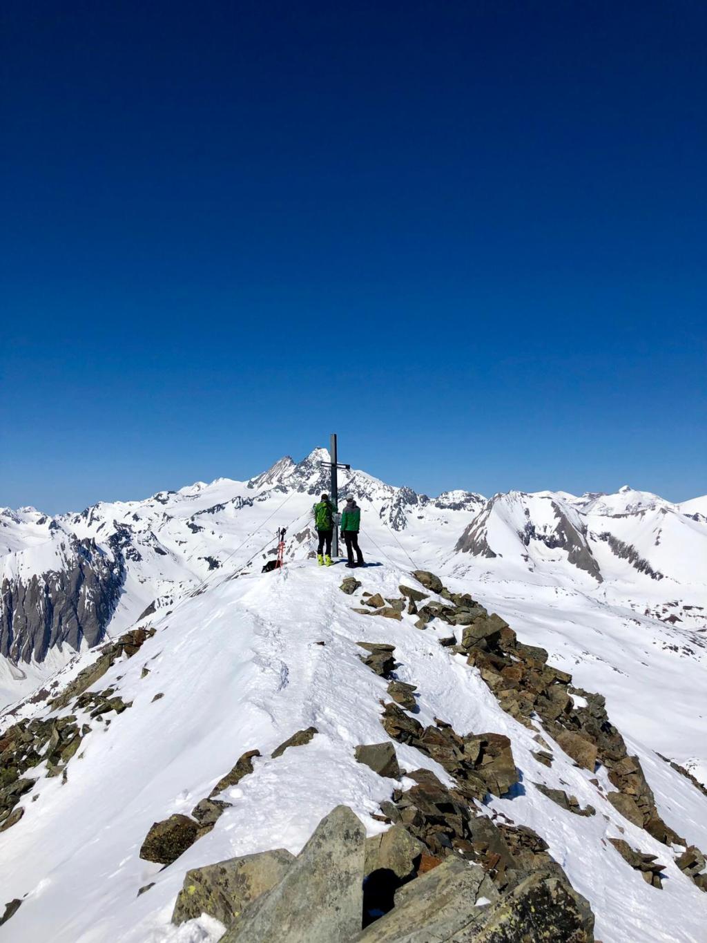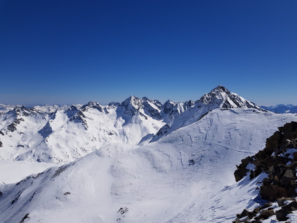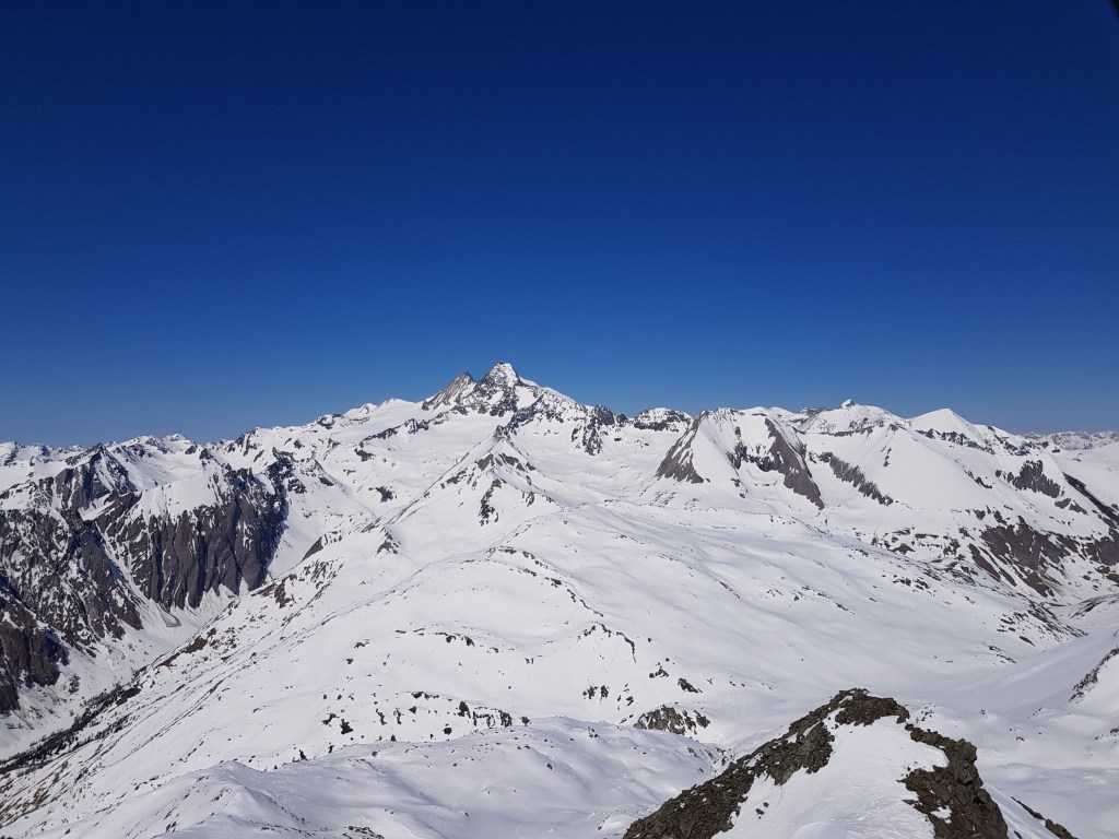 Der erste 3000er mit Skiern. Entsprechend zäh der Anstieg auf den letzten Höhenmetern. Sehr gutes Wetter, allerdings vor allem im unteren Teil recht wenig Schnee.