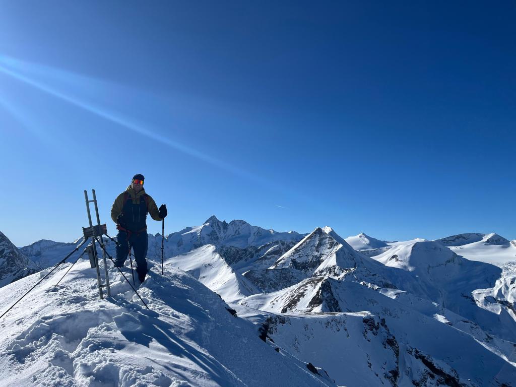 Bestes Wetter und grandiose Fernsicht. Im Gipfelbereich Taupunkte um -30°C.