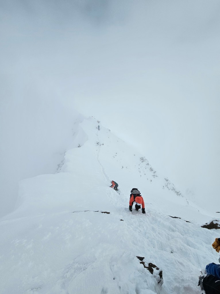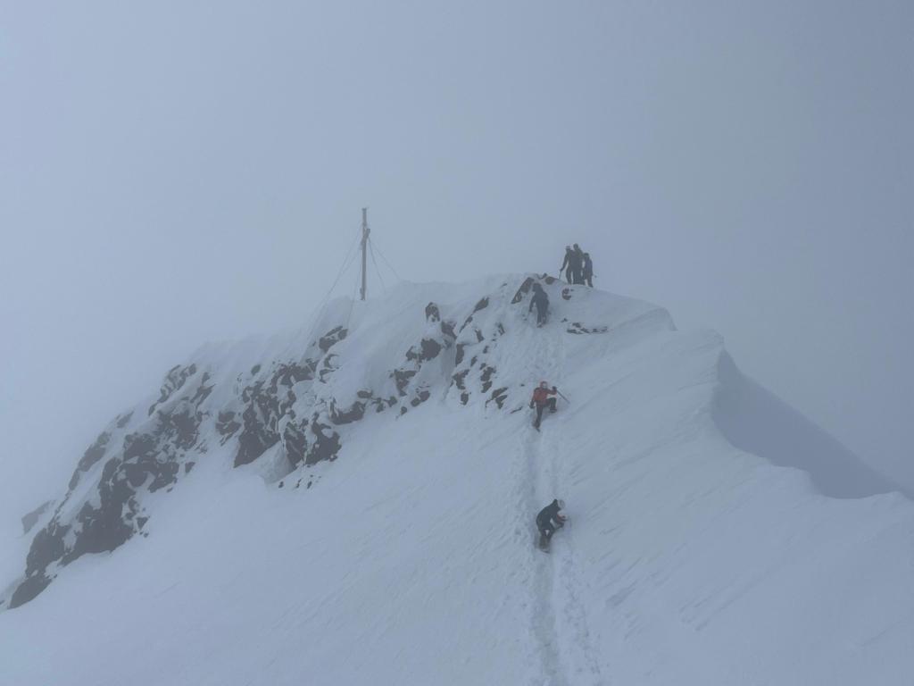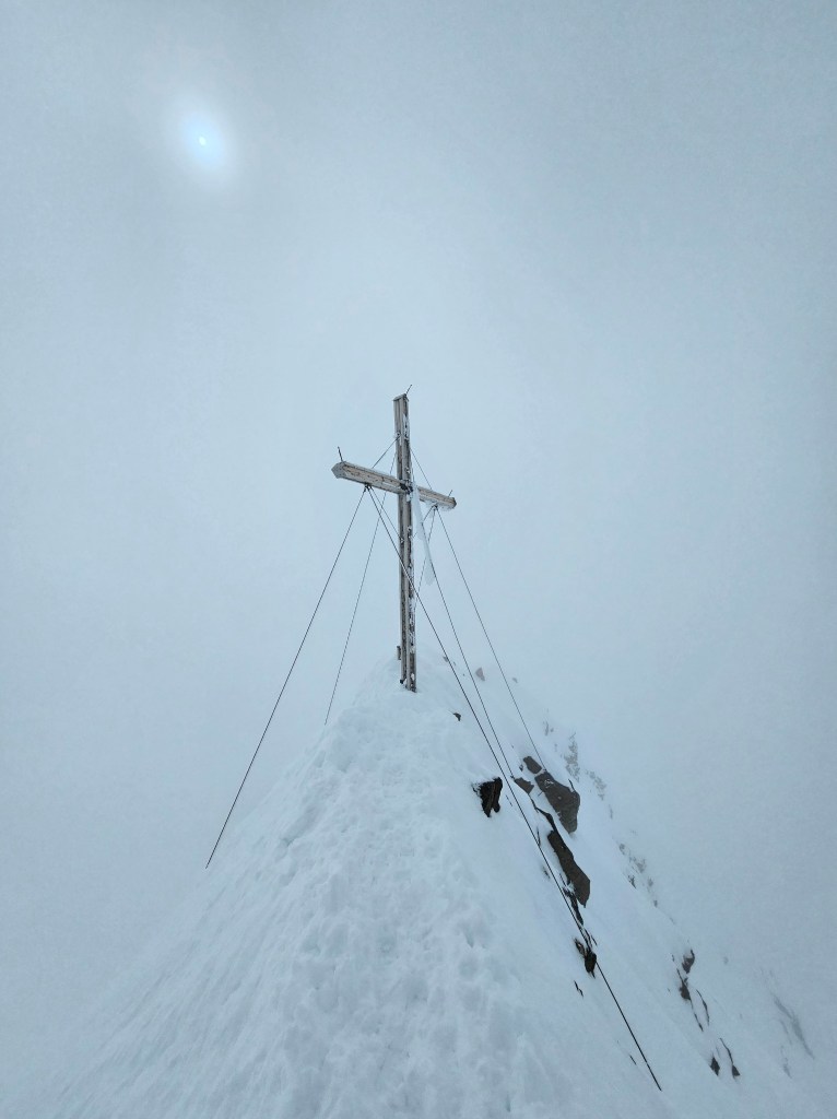 Insgesamt eine grandiose Tour mit interessantem Finale. Der Gipfelgrat war bis auf die letzten Meter gut zu gehen, die letzten Meter zum Kreuz sind allerdings ziemlich ausgesetzt. Spur war vorhanden.
