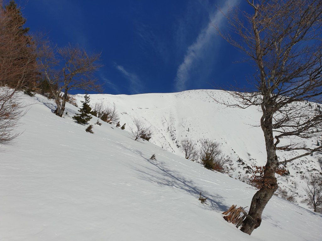 Abfahrt über die Eisgrube bei guten Schneebedinungen. Südseitig bei entsprechender Neigung firnig, sonst kompakte Schneeoberfläche.