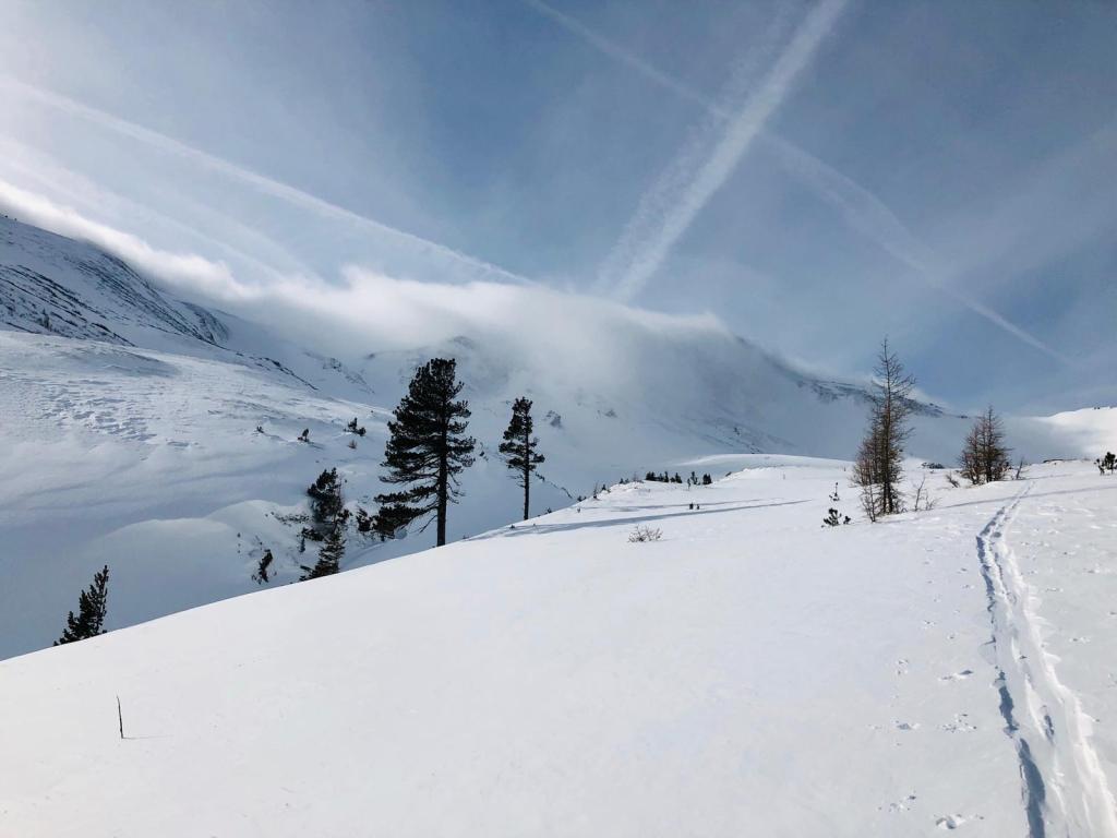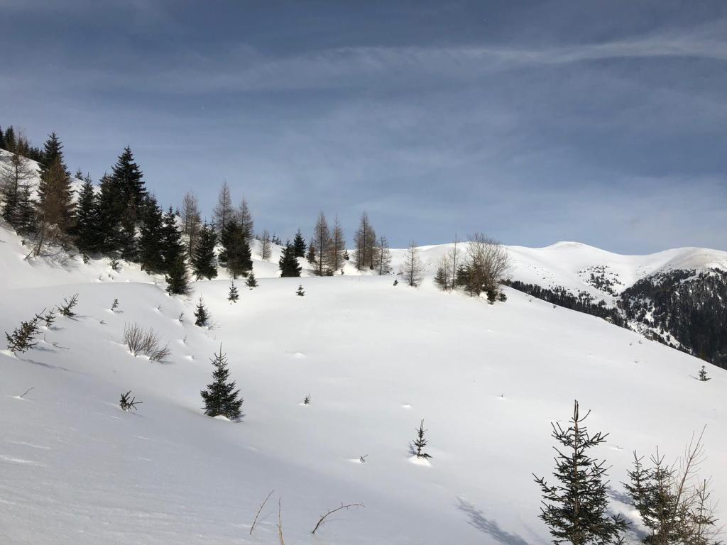Ausgangspunkt Scharnitzgraben. Aufstieg entlang der Forststraße bis zur Koglerhütte. Weiter im freien Gelänge in Richtung Plankboden. Wetter im unteren Bereich gut, im oberen Bereich Staubewölkung – deshalb die letzten Meter zum Gipfel nicht absolviert.