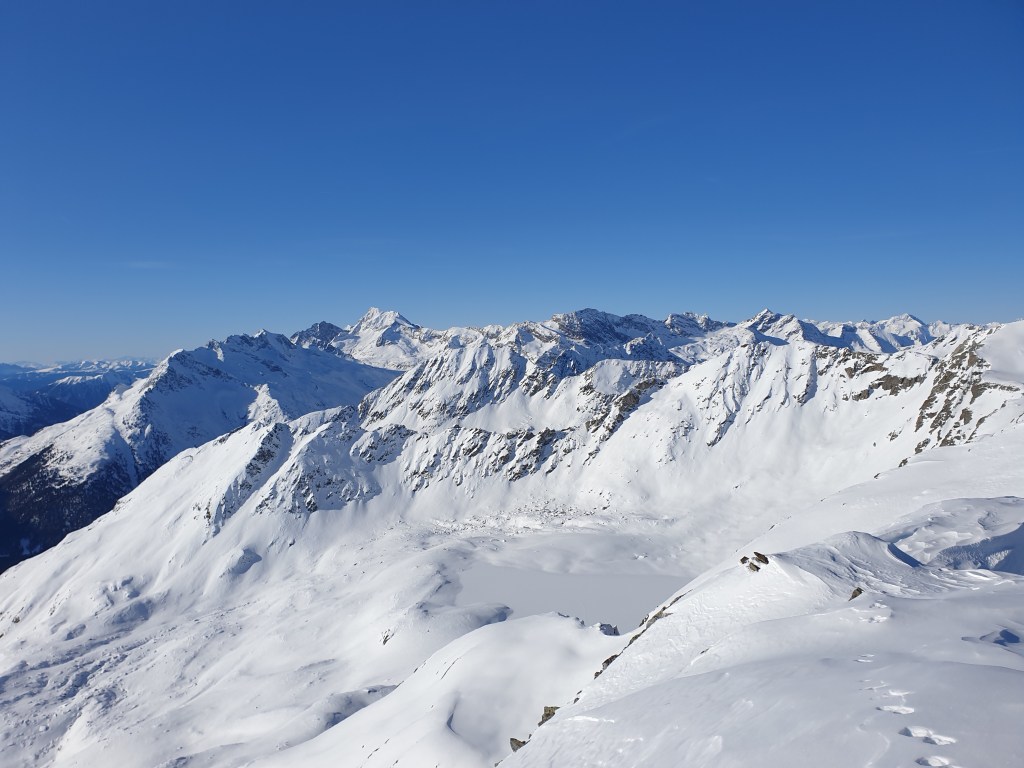 Gute Schneelage, perfekte Wetterbedingungen – ausgezeichnete Fernsicht und auch am Gipfel kein Wind.