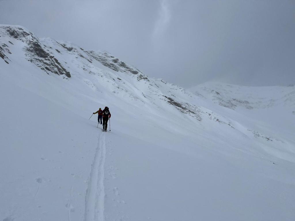 Aufstieg Richtung Bartlhütte über Forstweg und in weiterer Folge im freien Gelänge zur Nahenfeldalm. Weiter in Richtung Scharte zwischen Barleitenkopf und Plankowitzspitze. Die letzten Meter zur Scharte zu Fuß. Aufgrund von starkem Wind und schlechter Sicht Abbruch der Tour bei der Scharte.