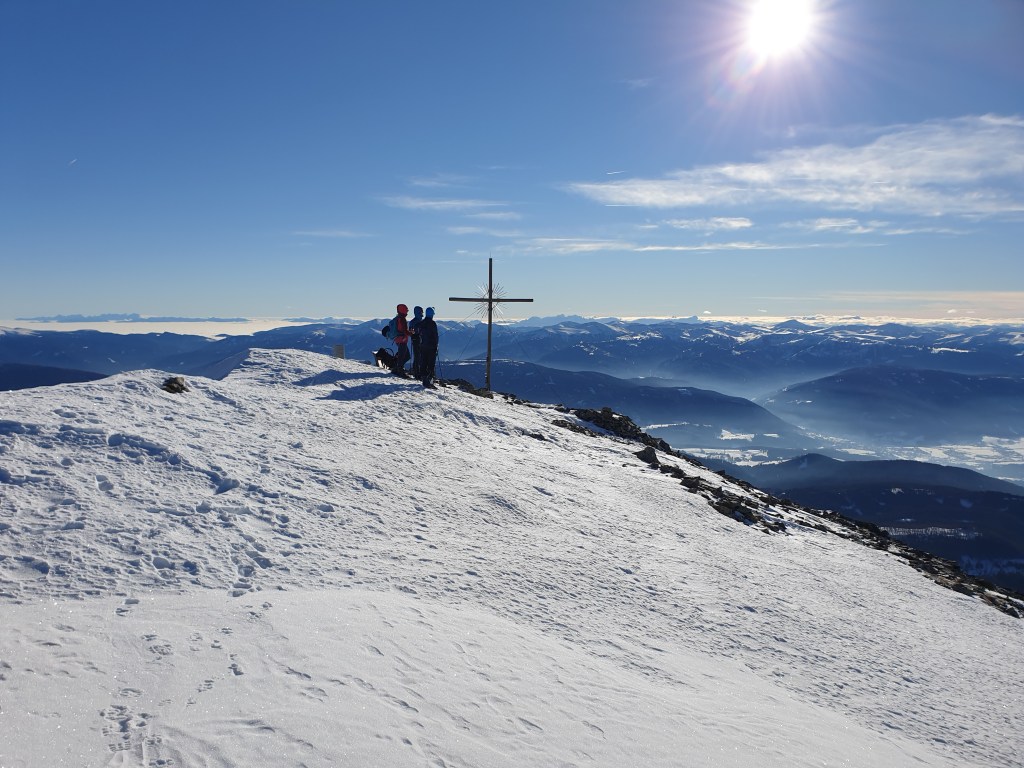 Start bei der Ludlalm. Entlang der Forststraße zur Preber-Halterhütte, hier genügend Schnee. Weiter auf direkter Route zur Südrinne. In diesem Bereich relativ wenig Schnee, allerdings genug für einen durchgehenden Aufstieg mit Ski. In der Rinne wieder ausreichend Schnee. Die letzten Meter zu Fuß zum Gipfel. Alleine am Gipfel mit sehr schönen Blick auf die Stratusfelder über den südlichen Becken.