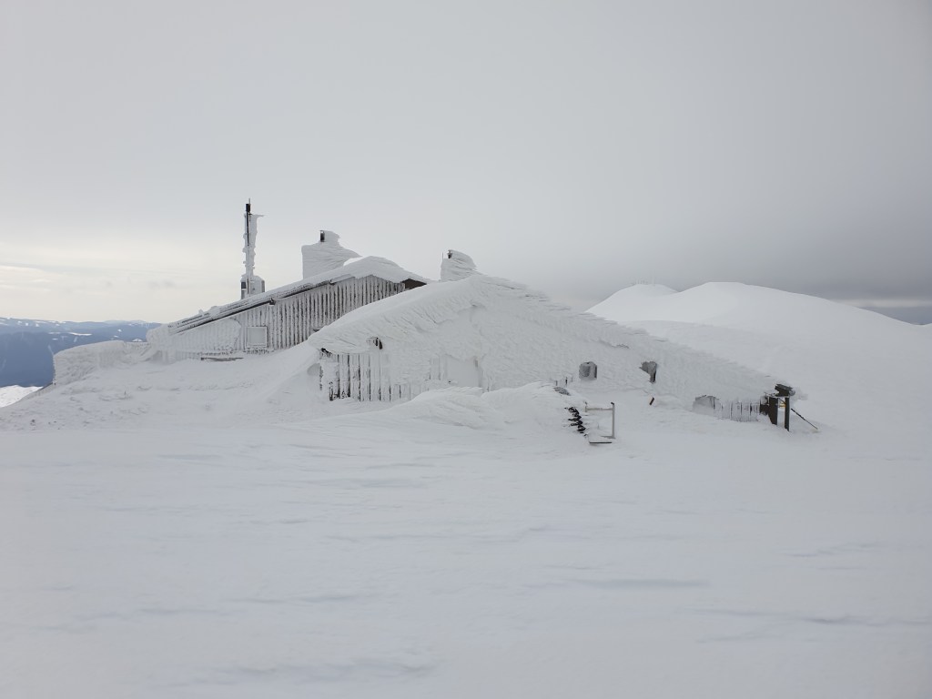 Schneelage nicht besonders gut, Piste nicht in Betrieb, allerdings ausreichend Schnee, ebenso am Forstweg und im Wurzengraben – Kombination aus Schnee und Reif. Am Gipfel tiefwinterliche Verhältnisse. Wetter brauchbar, Gipfel zwischenzeitlich in Wolken, windig.