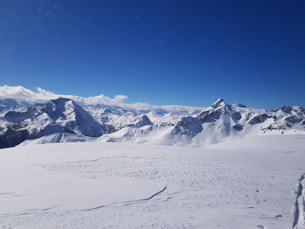 Perfektes Wetter, am Gipfel leichter Wind. Schneelage sehr gut.
