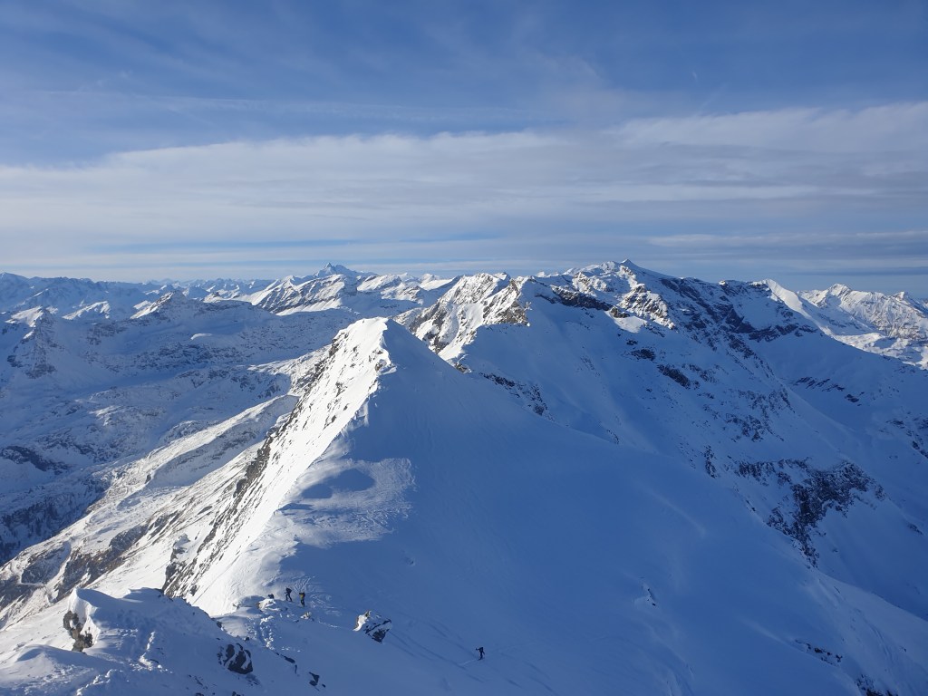 Bestes Wetter, in den schattigen Nordhängen allerdings ziemlich kalt. Schneelage gut.