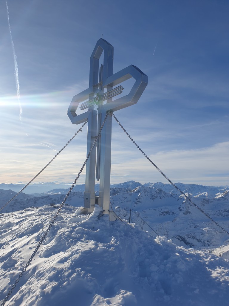 Eine von zahlreichen Touren auf den Vorderen Geißlkopf. Von der Stockerhütte entlang der Forststraße bis zur Jamnigalm. Weiter im Kessel Richtung Hagener Hütte. Später Wechsel in die Nordseite und das letzte Kar steiler bergauf zum Skidepot knapp unter dem Gipfel. Die Tour war nur bis zur Hagener Hütte gespurt. Die letzten Meter in leichter Kletterei zum Gipfelkreuz.