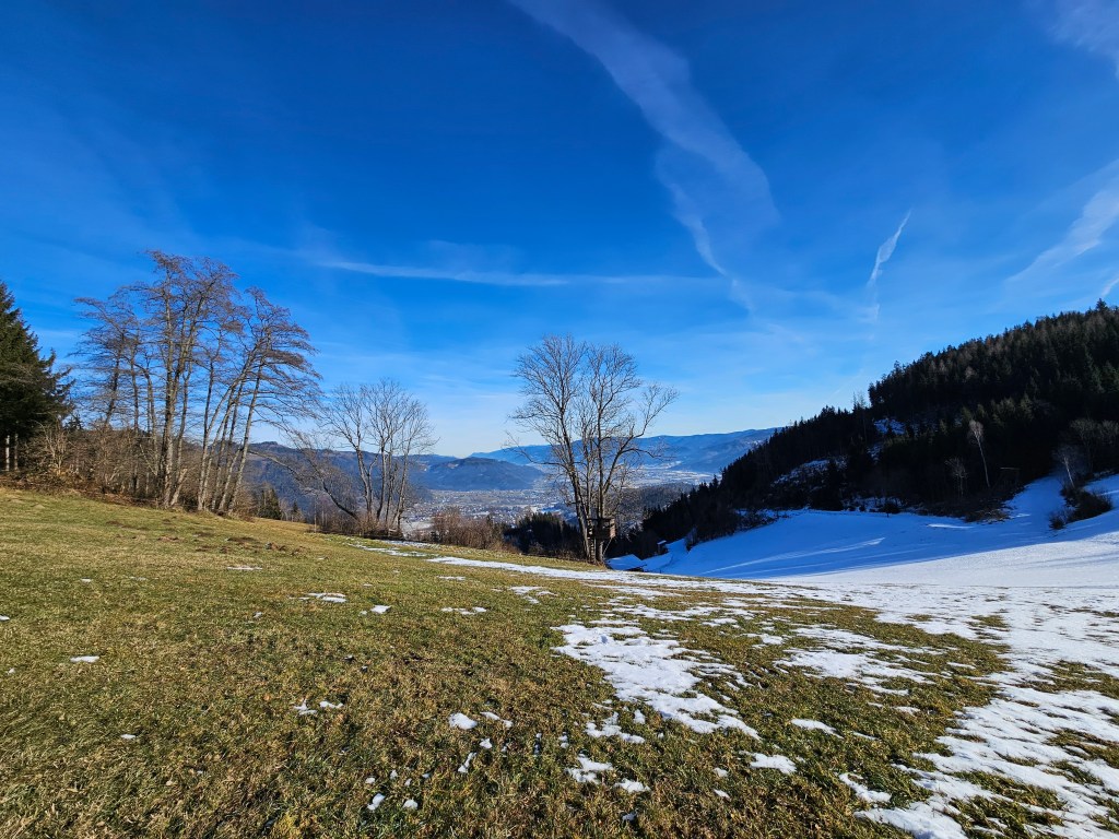 Anhaltende Hochdrucklage mit kräftiger Inversion. In Parschlug frostig, am Gipfel T-Shirt Wetter. Einzelne Schneefelder. Sehr gute Fernsicht.