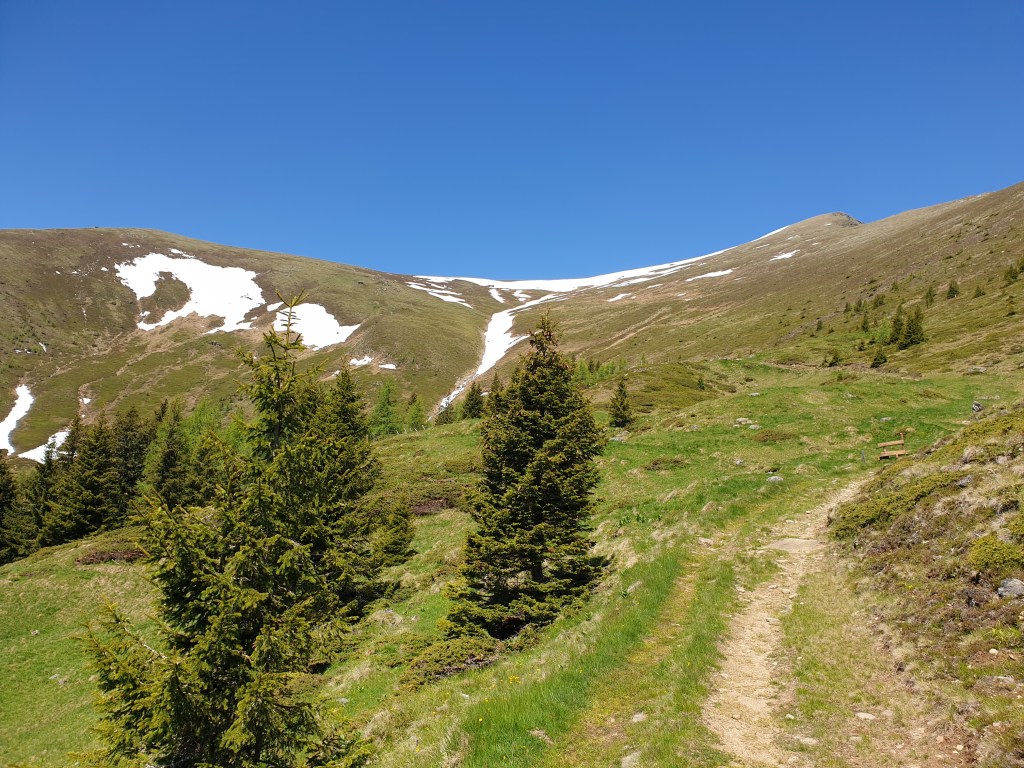 Ausgangspunkt Parkplatz Greimhütte. Aufstieg entlang des Wanderwegs über die Südostschulter.