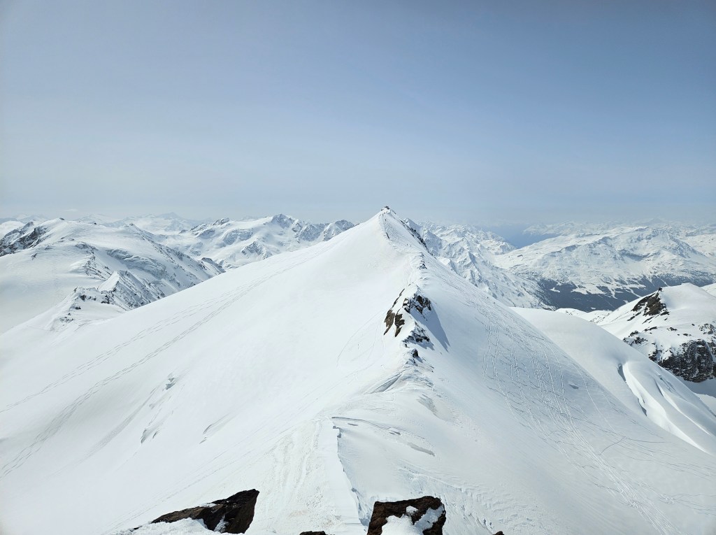 Tour im Kombination mit dem Cevedale. Vom Gipfel des Cevedale kurzer Abstieg in die Scharte und zu Fuß weiter zum Gipfel der Zufallspitze.